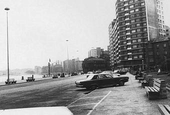 La fotografía se cree que es del año 1.975; respecto a la publicada hace escasas fechas, realizada en la primera década del pasado siglo, las diferrencias son notables. El “boom” de la construcción, de una especulación inmobiliaria que terminó con la belleza natural de una playa única, ahogardon el “martillo” de Capua entre edificaciones de pésimo gusto, bajo coste, gran margen comercial para las empresas constructoras que además, crearon la necesidad entre la ciudadanía, de poseer un trozo de planta en un inmueble con vistas al mar. Fue el triunfo de la propiedad horizontal frente a la obra de Mariano Marín, responsable de su construcción, iniciativa de Alejandro Alvargonzález, y se quedó ahí, estorbando un tráfico rodado en aumento que terimón por pedir -inexplicablemente- su demolición. Está bien donde está, recordándonos a todos el triunfo del buen gusto sobre la especulación, aunque quede empequeñecido dentro de una ciudad especialista en devorar sus propios espacios naturales.