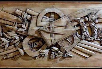 Si las cuerdas muestran uno de los aspectos relevantes a los que no solemos prestar atención otra curiosidad son los talleres de escultura. Conocidos son los mascarones de proa que adornaban las inmensas naves de madera pero no eran los únicos elementos decorativos que salían de los talleres: mostramos un bello panel con instrumentos matemáticos útiles para la navegación.