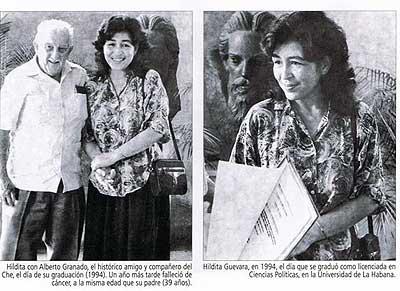 La hija mayor del "Ché" Guevara, fruto del primer matrimonio del Che (en la foto),fue bibliotecaria de la Casa de las Américas en La Habana (Cuba). Ernesto "Ché" Guevara conoció a Hilda Gadea en México en 1954, donde ella lo adoctrinó en el marxismo; se casaron en Guatemala en 1955. Fue Hilda, quien le presentó a Raúl y Fidel Castro. En 1956 nació su primogénita Hilda "Hildita" Guevara. Tenía 11 años cuando murió su padre en la selva boliviana. En apariencia vivió una vida tranquila en Cuba, en un importante centro de propaganda oficial y añorando ver llegar "la cara humana del comunismo". Murió a los 39 años (como su padre) de un tumor cerebral. En una famosa carta póstuma del Ché a sus hijos les decía "Crezcan como buenos revolucionarios. Estudien mucho para poder dominar la técnica que permite dominar la naturaleza. Acuérdense que la revolución es lo importante y que cada uno de nosotros, solo, no vale nada. Sobre todo, sean siempre capaces de sentir en lo más hondo cualquier injusticia cometida contra cualquiera en cualquier parte del mundo. Es la cualidad más linda de un revolucionario".