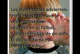 Un comentario de Maril, madre de una colegiada y con razón cansada del entorno del fútbol, llama la atención y no por que sorprendan actitudes sobradamente conocidas, lo curioso del caso es que si ya un niño de apenas dos años se da cuenta de quien le está amargando la fiesta y a su modo llama la atención al "adulto"... sobran comentarios.Dentro de lo simpático que pueda parecer el tema, lo serio, real y preocupante es que muchos padres ya están optando por no llevar a los mas pequeños a un sitio que cada vez parece menos apropiado para su educación, cuando debería ser lo contrario. Si los niños no pueden ni deben estar en sitios con humo, estos malos humos que también dañan y mucho deberían estar mas controlados.