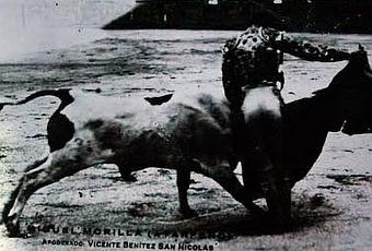 “Atarfeño” debutó con picadores en Priego de Córdoba en 1927 junto a “Parrita” y el lucentino “Parejito”. El 17 de mayo de 1929 se presentó en Madrid como novillero consumado dejando una extraordinaria sensación entre los aficionados. Llevaba muy bien su carrera como torero hasta que llega el año 1934. El 2 de septiembre se anuncia su despedida como novillero en Granada, donde se encierra con seis novillos toros de la ganadería de don Rufino Moreno Santamaría. Su próxima actuación como matador iba a ser un mes más tarde, el 2 de octubre en la Plaza del Puerto Santa María, donde iba a tomar la alternativa de manos del mismísimo Juan Belmonte, pero el desafortunado “Atarfeño” no pudo cumplir esta importante cita ya que murió esa tarde de su despedida como novillero. El soñado y ansiado doctorado no iba a tener a sus paisanos como testigos ya que estaba previsto en la plaza del Puerto de Santa María -nada menos que con el maestro Juan Belmonte de padrino- y por eso tal vez Miguel no dudó en encerrarse en su querida Plaza del Triunfo con seis astados grandes y cornalones. Era un gesto de paisanaje que pretendía ser también gesta importante, truncada fatalmente durante la lidia del segundo toro, cuando el citado Estrellito berrendo en negro, gordo, gran¬de y manso, que había llegado al último tercio con mucho poder y avisado, le corneó brutalmente en la ingle y le secciono la arteria femoral y la vena safena. Fue al darle el tercer pase de muleta, falleciendo a poco de entrar en la enfermería. Atarfeño ganaba esa tarde mil duros y estrenó un terno azul y plata. El novillero Epifanio Bulnes, que actuaba de sobresaliente, despachó tres toros, pues al conocer el público la muerte del torero hizo que se suspendie¬ra la corrida. Los astados de aquella tarde no eran todos del hierro anunciado de Rufino Moreno Santamaría, de Sevilla. Dos de ellos pertenecían a la ganadería de Julio Garrido de Vílchez, de Jaén. Estos dos Últimos, desecho de tienta y cerrado, como los restantes, llevaban al parecer dos meses en los corrales de la plaza y Atarfeño, que confiaba poco en su juego, ordenó que no salieran al comienzo de la corrida. Quería el torero alcanzar el triunfo desde el primer toque de clarín y tenía más fe en poder hacerla con los novillos de Rufino Moreno. Miguel Morilla, Atarfeño, que viste para la ocasión de azul celeste y plata, sale decidido. Está con enormes ganas y se deja notar en el que abre plaza, a pesar de que no puede hacer faena de orejas. Una vuelta al ruedo es el premio a su meritoria labor. Estrellito, segundo de la tarde, ya está en el ruedo. Manso y peligroso, toma cuatro puyazos y tres pares de banderillas. Miguel advierte las dificultades de su enemigo nada más instrumentarle un pase por bajo, según se relata en IDEAL, periódico que dedicó cinco páginas a la cogida y muerte del espada granadino: “Inicia Atarfeño la faena de muleta con un pase por bajo y huye del toro; dos más después de buscado y cambia la espada con la que estaba haciendo la faena por la de muerte. Otro pase por bajo y al dar el segundo, delante del tendido uno, casi en el centro del redondel, el astado engancha al matador, metiéndole la cabeza entre las piernas. Tira el toro la cornada y el torero sale despedido por los aires; la res lo busca en el suelo y lo pisotea, rompiéndole la taleguilla. Hay un lío en los peones y, al fin, Jesús Fandila, en un rasgo de valentía, lo saca a rastras de los cuernos del toro. ‘Atarfeño’ se pone de pie y se sacude la taleguilla con ánimo de continuar, pero al verse el muslo manchado de sangre se apoya en el citado banderillero y se dirige hacia el más próximo burladero, desde el cual, en brazos de las asistencias, pasa a la enfermería, dejando un reguero de sangre por el callejón. La cogida ha producido una enorme impresión en el público que, desde el primer momento, se ha percatado de la importancia del percance”. Miguel Morilla también fue consciente desde el primer momento de la gravedad de la cornada. “Cogedme bien que me caigo”, le dice a Fandila y a su hermano José, que le ayudaron a levantarse. “Que me desangro, que me muero,” añade el torero. Un monosabio y el futbolista Pepe Carmona, íntimo amigo suyo, lo llevan hasta la enfermería, donde el doctor Francisco Fernández Cambil le opera inmediatamente en unas condiciones dramáticas. Del patetismo de la situación vivida en la enfermería ha quedado el testimonio gráfico de Torres Molina publicado en IDEAL y en el que puede verse al diestro con la cabeza fuera de la camilla totalmente inclinada hacia atrás. La enorme pérdida de sangre hacía temer un fatal desenlace y se pretendía de esta forma que no dejara de circular el flujo sanguíneo por el cerebro. “Me derramo por la vegija, me muero “, le comenta angustiado Atarfeño a los médicos, que tratan desesperadamente de reponer la sangre y ligar las arterias y venas. “No hagáis nada, todo es inútil, quiero morirme para no sufrir más”, suplica el torero, que pide a los amigos: “Id por mi hijo corriendo. ¡Hijo mío!”. El niño estaba con su abuela materna en el hotel San Pedro y no pudo ver a su padre con vida. Atarfeño moría instantes después, a las siete menos veinte de la tarde, rodeado de los médicos, de su ex apoderado, Vicente Benítez, de Joaquín Sabrás, catedrático en Madrid y amigo de Miguel, y del periodista Juan García Canet, Juanito. En una habitación contigua se encontraban los hermanos del torero, su suegro y gran número de amigos y curiosos. También estaba en las dependencias de la enfermería el picador Francisco Embiz, Chófer, lesionado por el tercer novillo y que esperaba, conmovido por el drama, asistencia médica. Años después, Francisco Embiz también pasaría a engrosar la lista de víctimas de la fiesta por un fatídico percance ocurrido en la Plaza de Toros de Málaga. El parte facultativo emitido por el docto