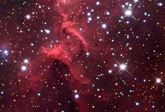 Después de la expansión de nubes en IC 1805, la radiación ultravioleta y los vientos estelares de las estrellas más viejas obligan a su vecina IC 1795, el más reciente estallido de formación estelar en la zona hace sólo 100.000 años. Aunque es pequeño en comparación con sus vecinos, IC 1795 es uno de las nubes moleculares más grandes conocidas en la Vía Láctea. La nube invisible (detectada por la emisión de radio CO) mide unos 200 años luz de diámetro y contiene la masa de 100.000 soles. Dos grupos dominantes de estrellas OB iluminan la región HII IC 1848. La nube de emisión tiene varias zonas brillantes a lo largo de su perímetro. Estas zonas representan puntos de contacto donde el frente de ionización se encuentra con el gas neutro más denso de la nube molecular adyacente. Se están produciendo ráfagas de formación estelar en los claros bordes de IC 1848 como la nube HII que se expande en el gas frío de los alrededores.