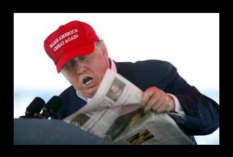 Donald Trump lee el diario Wall Street Journal en un acto de campaña en Jacksonsville, Florida. REUTERS/Daron Dean