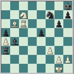 46.e6 Un punto precipitado porque da vida al caballo negro. [Es mejor 46.Cc5! Rf8+/=] 46...Cd6= 47.h4 [47.Af4 a3 48.Ae5+ Rh6 49.Ta7 Ce4+ 50.Re2 Te1+ 51.Rd3 Rg5=] 47...a3! Este peón es más importante que el de "e6" y por ello la posición de las negras debería sostenerse... . 48.Ta7 g5 49.hxg5 [49.Ce5+ Rf6 50.Cc6 Cb5 51.e7 Ae1+ 52.Rf3 g4+ 53.Rf4 Rf7 54.Ta8 Cc7 55.Td8 Tb1=] 49...Rg6 50.e7 Diagram
