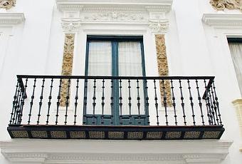 La fachada es mu simple con un balconada en el centro sobre la puerta principal y dos pequeños balcones a ambos lados. Estos últimos prescinden de la reja de hierro y apuestan por pilares pétreos en forma de columnas. Tienen forma circular.
