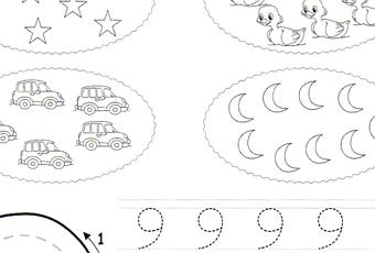 Ficha imprimible de matemáticas para 5 años. Tema: El número 9
