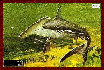 Tiburón martillo o Sphyrna mokarran.Recreación de Rialp “Junior”.