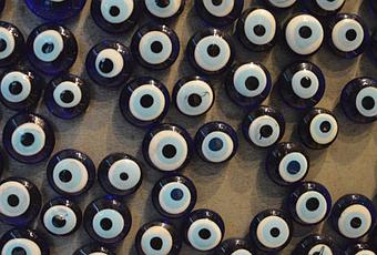 Dice la creencia popular que el ojo no puede comprarse para uso propio, sino que debe ser regalado. Sea cierto o no, el amuleto es uno de los objetos que aparece con más frecuencia en las tiendas del Gran Bazar de Estambul. Su presencia toma forma en objetos diversos, desde pulseras hasta remeras; aunque su representación más popular es el ojo de vidrio con una serie de ojos más pequeños adosados a una trenza de hilos. Esta trenza, incorporada en su parte superior, permite colgarlo facilmente de cualquier pared del interior del hogar o bien imitar la costumbre popular y colgarlo en la fachada de la vivienda.