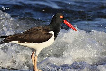 Las muestro recién ahora porque había subido varias de ostreros en esas fechas, unas de un ostrero y uno de sus pichones que obtuve a corta distancia. En este caso también logré un acercamiento bueno pero no tanto como el anterior, lo que me gustó de esas fotos fue que el ostrero estaba parado a orillas del mar entre las rocas, atento ante mi presencia, mientras el oleaje rompía en la costa escabrosa y salpicaba constantemente, cosa que al ave no la perturbaba en lo más mínimo, están muy acostumbradas al oleaje ya que su hábitat es precisamente la costa del mar.