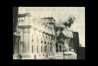 Asalto al Palacio de la MonedaEl golpe de Estado acaecido en Chile el 11 de septiembre de 1973, fue una acción militar llevada a cabo por la Fuerzas Armadas y Carabineros, para derrocar al presidente socialista Salvador Allende y al gobierno izquierdista de la Unidad Popular. A ello le precedió, un período de alta polarización política y convulsión económica y social. Los militares contaron con el apoyo de la derecha política y también de un sector del Partido Demócrata Cristiano.El golpe fue planeado inicialmente por un sector de la Armada de Chile, con el apoyo de los Estados Unidos.[3] Posteriormente, se agregaron generales de los altos mandos de las Fuerzas Armadas y de Carabineros. El comandante en jefe del ejército, general Augusto Pinochet asumió la dirección del complot. También hubo influencia de parte de varios grupos de poder nacionales e internacionales, entre los que destaca el presidente Nixon,[4] [5] [6] el vicepresidente de EEUU, Gerald Ford, George H. W. Bush y la CIA.[7 DOCUMENTAL: LA BATALLA DE CHILE