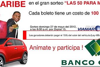 El Artículo 309, Ley 11-92 que grava los ingresos a un beneficiario por un premio y aunque no aparecía en algunos flyers promocionales del concurso; si estaba bien claro en el web site del Banco Caribe.