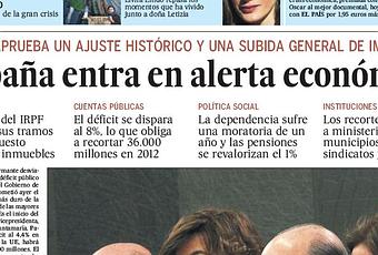 El titular sobre la entrada en alerta económica de nuestro país con la foto de una buena parte del gobierno popular a su pie, traslada la sensación de que acabamos de sufrir este problema financiero, de forma súbita, y a raíz del cambio de color en la Moncloa. Más abajo se lee que hemos superado en un 2%, aproximadamente, la previsión de déficit para 2.011. ¿Es el resultado de la gestión popular o de la socialista?. El ajuste de Rajoy se califica de “histórico”, pero no se encuentra epíteto para la gestión de gobiernos anteriores que dilapidaron con sus improvisaciones unidas a las inevitables consecuencias de la crisis, un país con una situación económica envidiable. El gallego imperturbable anunció los tijeretazos mientras estuvo en la oposición y pronunció un discurso de investidura elegante, en el que obvió cualquier tipo de crítica hacia los mandatarios salientes, mientras el grupo Prisa no le da los cien días de margen y debuta con titulares que insinúan el incumplimiento de las promesas electorales del presidente, cuando apenas lleva dos semanas en el cargo y en un tiempo cuajado de fiestas. En las páginas interiores del diario, se encuentra una fotografía del leonés errante, en compañía de Sonsoles, disfrutando de estos días en Tánger y luciendo un moreno accesible solamente a unos pocos. No palidece D. José Luis cuando ve el estado en el que dejó a este país tras haber gobernado con la iniciativa de un delegado de bachillerato, sin una sola visita del presidente Obama, el de la conjunción planetaria. Dirigentes de perfil bajo, como Blanco, Pajín, Corbacho y el propio D. José Luis, no son comparables al quien fue fiscal más joven del Estado, o al perfil del Sr. Wert, que comentábamos el otro día. Podrán acertar o equivocarse, pero desde luego, debería otorgárseles el margen de confianza que la prensa del antiguo régimen parece negar de entrada.