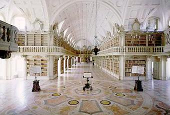 Sin embargo, la parte más espectacular del palacio se encuentra justamente en las dependencias de los monjes: se trata, naturalmente, de la gran biblioteca rococó. Esta destaca no sólo por sus dimensiones (casi 100 metros de largo) y su rica ornamentación, sino también y sobre todo por el gran número de obras valiosas que alberga, algunas verdaderas piezas de museo.