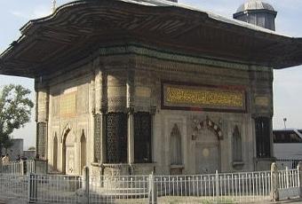 Antes de entrar en el primer patio, que es donde se compran las entradas al palacio, el llamado patio de los Jenízaros (los guardianes del sultán.....que irónicamente fueron masacrados por un sultán), seguramente repararán en la que se considera la fuente, porque es una fuente, más bonita de Estambul, la fuente de Ahmet III.