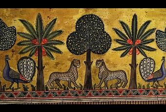 En las paredes de los apartamentos reales se representan escenas de caza y también animales con un valor simbólico. Así, el pavo real es el símbolo de la eternidad y el león es el de la fuerza y la realeza. Las figuras están enmarcadas en un paisaje de palmeras y arboles cítricos.