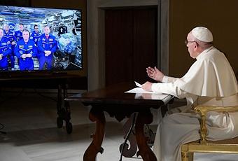 El papa Francisco conversó este jueves con los seis tripulantes de la Estación Espacial Internacional sobre el lugar del Hombre en el universo y sobre cómo es vivir "sin un arriba ni un abajo", dijo.