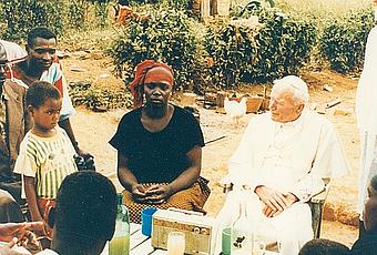 Y qué quieren que les diga... como católico, no quiero yo tener por ahí a un Papa que haga un alarde así de solidaridad simplemente porque es lo que pide parte del personal. Dejemos las fotos y las visitas solidarias para los glamourosos... yo prefiero una labor callada y profesional, prefiero muchas más veces el silencio comprometido y el calor humano que no tiene campanillas ni tiene “visibilidad” de papel couché. Puestos a hablar de fotos con encanto, mi preferida es aquella de Juan Pablo II en Angola, sentado al lado del camino sin protocolo y sin formalidades con una anónima familia africana, alrededor de una radio y unos refrescos. El verdadero compartir con los pobres no requiere tremendismos obscenos ni protagonismos interesados.