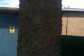 Las pletinas metálicas de enganche de la reja sobresalen en todos los muros, constituyendo un verdadero peligro para los niños que frecuentan el parque.