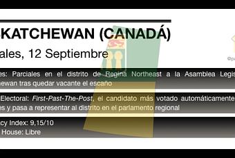 Los Detalles- El escaño de Regina Northeast en la Asamblea Legislativa de la provincia canadiense de Saskatchewan quedó vacante tras la dimisión de su representante, Kevin Doherty, para dedicarse al sector privado. Es el sexto distrito que celebra elecciones parciales en Sakatchewan desde las elecciones de abril de 2016.