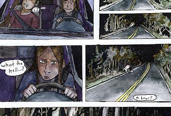 Seguimos con nuestro recorrido escalofriante durante el mes de octubre hasta llegar a Halloween y las festividades del Día de Todos los Santos y el Día de Difuntos. En esta ocasión, lo que os traemos es un pequeño webcómic de terror que hizo hace algunos años Ripley Cook (artista de quien hablaremos en el futuro, prometido). Las viñetas narran el espeluznante encuentro de unos viajeros con el famoso críptido Mothman... pasado, eso sí, por un filtro prehistórico. Disfrutad.
