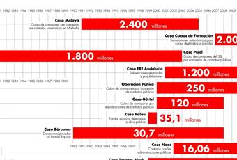 Los casos de corrupción del PP no son los más graves, sino los más mediáticos: Púnica, 250 millones; Gürtel, 120; Bárcenas, 30,7, y algunos más, pongamos 500-600 millones de euros.