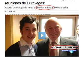 Es evidente que sí está habiendo una falta de rigor en el tratamiento de la historia. Otro ejemplo es la captura de pantalla de la web de Telecinco que encabeza este post. Como se ve, Telecinco dice que Nicolás aporta como prueba de su participación en las negociaciones sobre Eurovegas una foto con Adelson y la foto que aparece es con Leven.