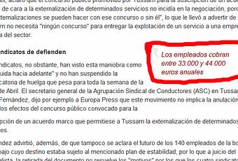 Con lo poco que cuesta encontrar a un empleado de Tussam y preguntarle cuánto gana al año para contrastar la información antes de dar una mentira oficial por sentado. Así está el periodismo y así la política, cuando se permite que mentirosos como Gutiérrez anden a su antojo disparando barbaridades y mentiras en los medios con total impunidad.