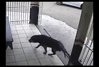 Imágenes de vigilancia de un restaurante en Brasil muestran a un perro que deambulaba por fuera cuando un coche de repente se estrelló contra el edificio.