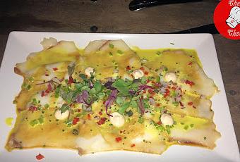 Nuestro inicio fue pinchar en hueso. El irlandés, (huevos pochados con trufa) sonaba muy bien, pero lamentablemente no les quedaba. Si probamos las flautas de pollo rebozadas en galleta y dips de tzatziki y fritata. Demasiados pasados de fritura, cerca de quemados. Poco que ver con la foto de su web. El tiradito de pez mantequilla y aji amarillo, plato típico peruano de influencia japonesa parecido al carpaccio, nos gustó bastante. Fue lo mejor de la noche. Seguimos con las croquetas, de chipirón, pato y bacalao y con un risotto de boletus y parmesano, presentado en una mini cocotte. Quizás demasiado al dente. Después, a destiempo, la ensaladilla rusa con carpaccio de gambón y bacalao, original, pero ya ni nos acordábamos que la habíamos pedido. Muy buena, por cierto. El último de los platos que compartimos fueron las berenjenas rebozadas y chamuscadas, rebozadas también en galleta. Las devolvimos por estar quemadas y nos trajeron otras que no nos cobraron a la hora de pagar. En la carta también ofrecen, entre otras cosas, coca de jamón de pato e higos, tataky de atún rojo escabechado, un timbal de chipirones con arroz negro, o un arroz caldoso con cigalitas. De postre pedimos la tarta de zanahoria con cobertura de queso y helado de galleta.