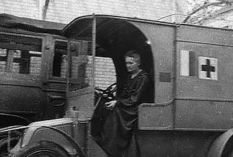 Ahora que se cumplen ochenta años de su fallecimiento y un siglo del inicio de la Primera Guerra Mundial, es un buen momento para recordar su gran aportación en el frente aliado. Marie, que había estudiado la naturaleza de los rayos X y sus posibles aplicaciones en el campo médico, decidió acercar esta técnica a los hospitales de guerra. Con la ayuda de la Cruz Roja Francesa y de la Unión de Mujeres de Francia, Marie equipó un camión Renault con un aparato de rayos X y marchó a los lugares en conflicto donde pudo ayudar a los cirujanos a diagnosticar sobre el terreno la magnitud de las heridas de los soldados.