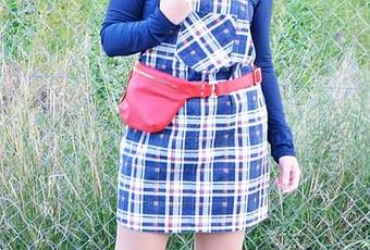 Y ahora, tomando como protagonista al peto del look que os muestro a continuación os puedo decir que a parte de cómodo es muy versátil por el estampado que lleva. Un estampado de cuadros en azul marino con pequeñas rayas en tonos rojos y naranja. En esta ocasión lo combiné con una camiseta básica de cuello cisne y para darle un toque más actual opté por añadirle una riñonera roja y una gorra combinada.