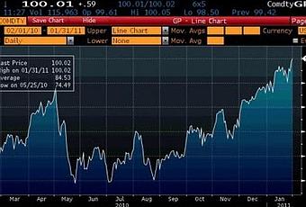 Las agitaciones en Egipto, y la preocupación por los envíos a través del canal de Suez, empujaron hoy al precio del petróleo por sobre los 100 dólares el barril, exactamente a los 101,08 dólares en la bolsa de Londres. Un dato curioso es que la OPEP, el cártel de países productores de petróleo, no se ha manifestado sobre al alza.