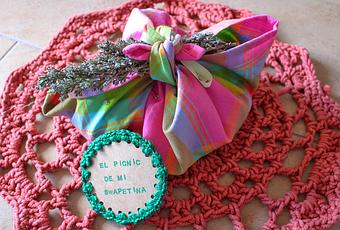 Creé un picnic para ella. Le llegó todo en su mantelito listo para ir al campo, con su ramillete de romero y su etiqueta identificativa. (¡Qué miedo tuve al envío y a que llegara todo sano!)