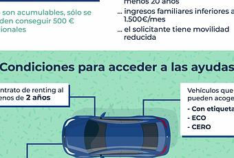 Las condiciones para acceder a las ayudas son muy sencillas, ya que basta con hacerse con un vehículo con etiqueta C, ECO o CERO y achatarrar un vehículo que tenga al menos 10 años, con la condición de que el beneficiario de la ayuda tiene que ser titular de ese vehículo desde hace al menos un año. En el caso del renting, la duración mínima del contrato ha de ser de dos años, duración mínima habitual de este tipo de contratos que se pueden extender hasta los cinco años.
