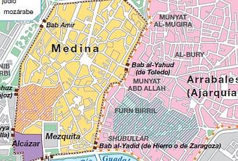 - Los arrabales o barrios residenciales periféricos. Su plano es también desordenado. Cada arrabal tenía su mezquita y generalmente su mercado. Con el tiempo, muchos de ellos acaban amurallándose.