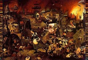 Pieter Brueghel (1525-1569). Die Dulle Griet. "Por plazas y mercados corría un hombre clamando: -He perdido a mi dios. ¿Quién ha visto a mi dios?- Nadía sabía darle noticias de su dios. A poca distancia el dios de aquel hombre corría extraviado en la misma dirección y ¡He perdido a mi dios! -decía- ¿Quién ha visto a mi dios?Pequeños dioses imprevistos proliferan y nos repiten en una innumerable desolación de espejos paralelos. Cada cual siguiendo a su dios en el espejo del otro que sigue al suyo. En el mismo lodo todos manoseados. Sólo los locos se apartan y extáticos siguen de lejos el juego de fango y de cristales."