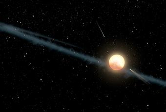 Ilustración artística de cometas y un anillo de polvo alrededor de KIC 8462852. Crédito: NASA/JPL-Caltech.