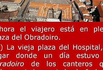 “…el mítico lugar donde confluyen caminos y peregrinos procedentes de todos los países de la Tierra, siguiendo las pisadas de otros muchos anteriores que, a lo largo de los siglos, llegaron a esta ciudad atraídos por su estrella y su fama milagrosa, igual que hiciera años antes -en el 813- el obispo de Iria Flavia Teodomiro, que fue el primero en llegar y el que descubrió el sepulcro sobre el que hoy se levanta la catedral. Una catedral que es, como la mayoría de ellas, el resumen de muchas catedrales superpuestas, desde aquel templo inicial que ordenó construir el rey Alfonso II el Casto a raíz del descubrimiento de los restos del apóstol y en torno al que surgiría la ciudad de Compostela.” JULIO LLAMAZARES:”Las rosas de piedra”El Pórtico de la Gloria