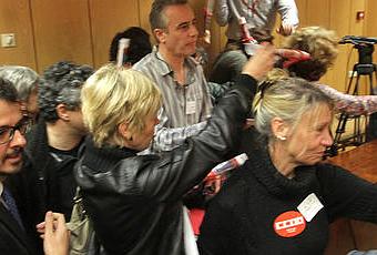 Desfilaron los de IU, los del PSOE y, cuando estaban haciendo la rueda de prensa los del PP, irrumpieron trabajadores y trabajadoras de CCOO para denunciar gastos impensables del anterior consejero de Asuntos Sociales, como ves aquí. La irrupción fue para repartir entre los medios de comunicación un dossier sobre el mencionado Salvador Victoria.