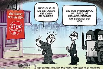 Bueno pues ya está puesta toda la maquinaria en marcha para que ese decreto no pueda aplicarse. Los primeros en protestar fueron los bancos, que los pobres no sólo no tienen bastante con lo que han recibido de dinero público sino que quieren seguir desahuciando para poder especular a su gusto. Y lo puedo entender, porque de esta gentuza avara, rácana, insensible e insolidaria no se puede esperar otra cosa.