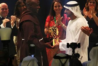 El principe de Dubai entrega el premio.Imagen tomada de: https://www.infobae.com/educacion/2019/03/24/uno-por-uno-con-quienes-compite-martin-salvetti-para-ganar-el-nobel-de-educacion/¡ FELICITACIONES !