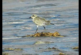 Y el bando de pequeños estaba compuesto de 32 chorlitejos grandes Charadrius hiaticula, 4 correlimos comunes Calidris alpina, y 1 correlimos tridáctilo Calidris alba, casi todos juveniles, salvo algún adulto de chorlitejo grande reconocible por sus patas anaranjadas.