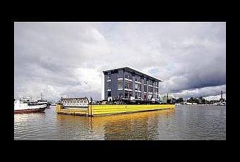El edificio, de 33 metros de largo, 12 de ancho y 12 de altura, ha sido transportado en una barcaza desde los astilleros STX de Turku, donde se ha construido, hasta un solar en alquiler junto al mar, donde lo han depositado con ayuda de una grúa.