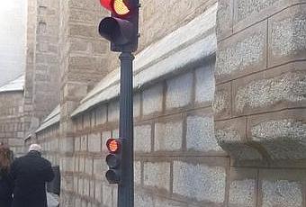 Los pulsadores eléctricos se instalaron en unas pequeñas cajas empotradas en la pared, con su correspondiente cerradura. La situada en las Cuatro Calles, se alojó en el inmueble que hace esquina Hombre de Palo con Chapinería. El otro registro aún pervive en su lugar, concretamente en el contrafuerte catedralicio que delimitaHombre de Palo con Arco de Palacio, perviviendo aún la puertecilla metálica del hueco habilitado en 1924. Sobre ella, todavía queda a la vista parte de la huella rehundida que fue preciso hacer para alojar el cable eléctrico que subía verticalmente hasta un punto donde se transformaba en un trazado horizontal y aéreo a lo largo del muro catedralicio y las casas particulares hasta llegar a las Cuatro Calles. Esta novedosa solución tuvo corta vida, pues en octubre de 1928, el alcalde Gregorio Ledesma y Navarro, decretaba la dirección única desde Nuncio Viejo hacia la calle del Comercio, prohibiéndose el sentido inverso.