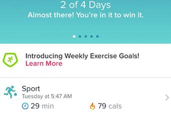 Fitbit usa referencias visuales de comportamientos pasados junto con textos motivacionales para animar a los usuarios a registrar su actividad más a menudo.