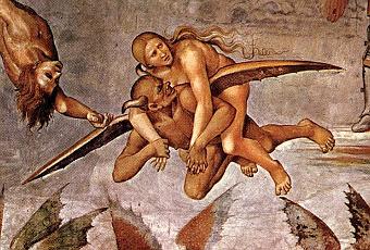 (Detalle del Fresco Condenados al Infierno, Juicio Final, del pintor Luca Signorelli, 1502, Catedral de Orvieto, Orvieto, Italia; Detalle del mismo, Llamada de los elegidos al Paraíso; Detalle del Fresco de Orvieto; Fresco Resurrección de la carne, Luca Signorelli; Fotografía de la Catedral de Orvieto, Italia; Fresco Predicación y hechos del Anticristo, Catedral de Orvieto, Luca Signorelli; Detalle del mismo, figuras con el autorretrato del pintor, Signorelli -mirando al espectador-, y de Fra Angélico detrás; Tabla Lamentación de Cristo muerto, 1502, de Luca Signorelli, el modelo de Cristo es el cadáver de su hijo asesinado, Cortona, Italia; Detalle del fresco Anticristo, con la figura de éste y Satanás detrás, aparece también una mujer a la izquierda, modelo al parecer recogido de la figura de una amante del pintor; Fresco Condenados al Infierno, Juicio Final, Catedral de Orvieto, Luca Signorelli; Detalle de éste; Detalle del fresco Resurrección de la carne, Juicio Final, Luca Signorelli, 1502, Orvieto, Italia.)