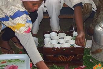 Etiopía, un país que te acoge, personas que siempre tienen una mesita con tazas preparadas para servirte un cálido café recién preparado.