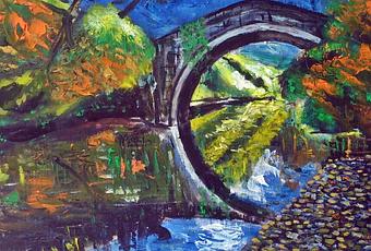 Como ya he dicho aquí alguna vez, “el vecino del mundo”, este blog, y el otro que tengo de pintura, nacieron a modo de daño colateral, o mejor dicho como manera de dar rienda suelta a mis inquietudes, y evitar así que éstas me devoraran, ya que víctima, junto a otras veintinueve personas, de un E.R.E. (como muchas veces, injusto) tuve que irme al paro, de hecho el finiquito lo firmé como “regalo de cumpleaños”, el día de mis 55 años. La vida es así de irónica, y sin sentimientos. Porque aquí los sentimientos los ponemos nosotros, si queremos, o si podemos.¡Bueno! Pues eso, que en las épocas de vacas gordas, algunas veces tenía pesadillas porque, había días, o mejor dicho, noches, en las que no me cuadraban las cuentas, o porque discrepaba con el jefe. ¡Siempre en el mundo de los sueños! Sin embargo, ahora, cuando el destino te hace que te refugies más en ellos, a modo de Edén, o refugio de paz en un mundo convulso (espero que no sea como prolegómeno al más allá final), no puedes hacerlo, porque digamos que llevas tus miedos de “despierto” al mundo irreal.Siempre me han atraído los puentes, de hecho acabo de pintar uno. A ciencia cierta nunca he sabido la razón de esa atracción. Viéndolo a posteriori quizás pueda ser una metáfora sobre separación de mundos, de modos de vida, y esa unión que debe de haber entre ambos. Porque un puente se puede entender como una unión, o una separación. Una especie de frontera o bisagra entre dos mundos.