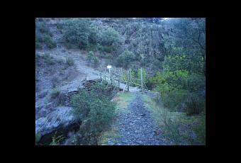 La gente del turismo son (somos) propensos a poner nombres llamativos a topónimos (lugares y rutas), en la creencia de que atraerán a posibles visitantes. Así ocurre con este curioso puente sobre el Jaramilla, que al que se conoce por “el puente tibetano” por su aspecto rústico y algo desangelado. Aunque su nombre real es Puente de la Hoz.