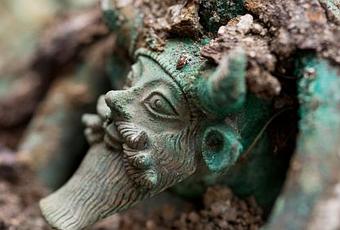 Detalle de un aro con la cabeza del dios Aqueloo descubierto en unas excavaciones arqueológicas en Lavau (Francia). / DENIS GLIKSMAN, INRAP.